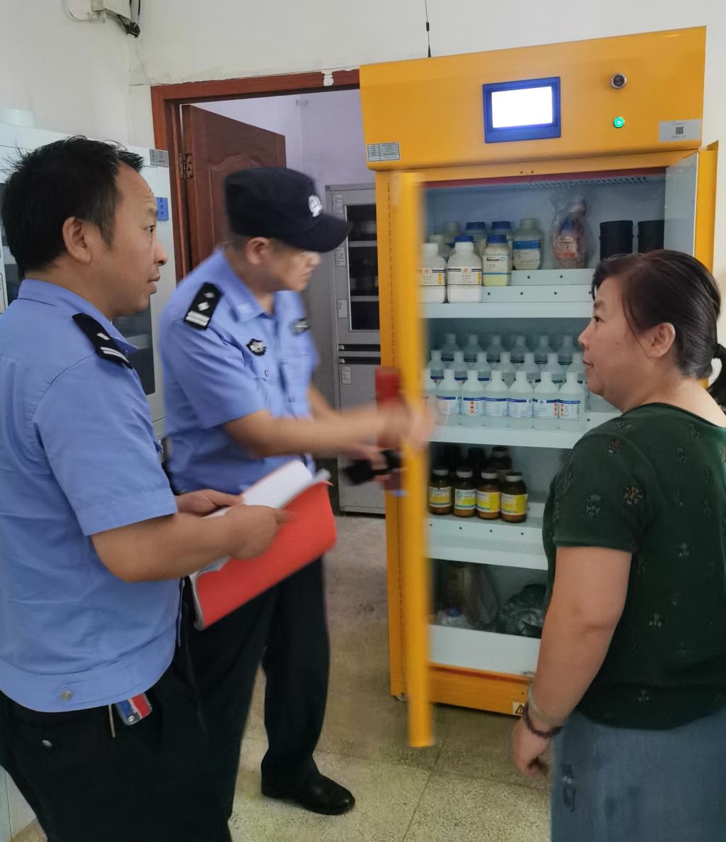 8月30日上午,校资实处督查小组姜孝成教授、陶文娜老师到yl6809永利官网进行实验室安全检查,重点督查实验室安全管理、实验室危化品管理、特种设备安全管理情况等。同天下午,橘子洲街道派出所白所长、陈警官等人来我院检查危化品药品库。