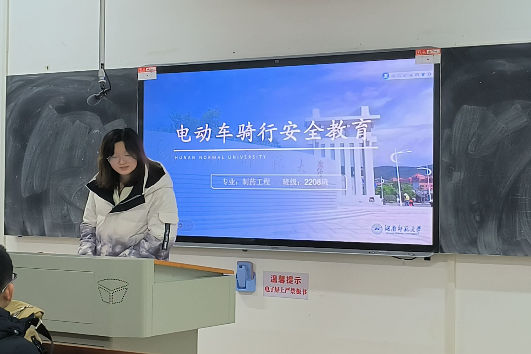 (通讯员 王天一)2月28日17时,yl6809永利官网2208班团支部在化学楼219教室开展有关“电动自行车行驶规范”的交通安全主题班会。此次活动由班长吴晰睿主持,旨在让同学们深刻地认识到规范骑行电动自行车的重要性。