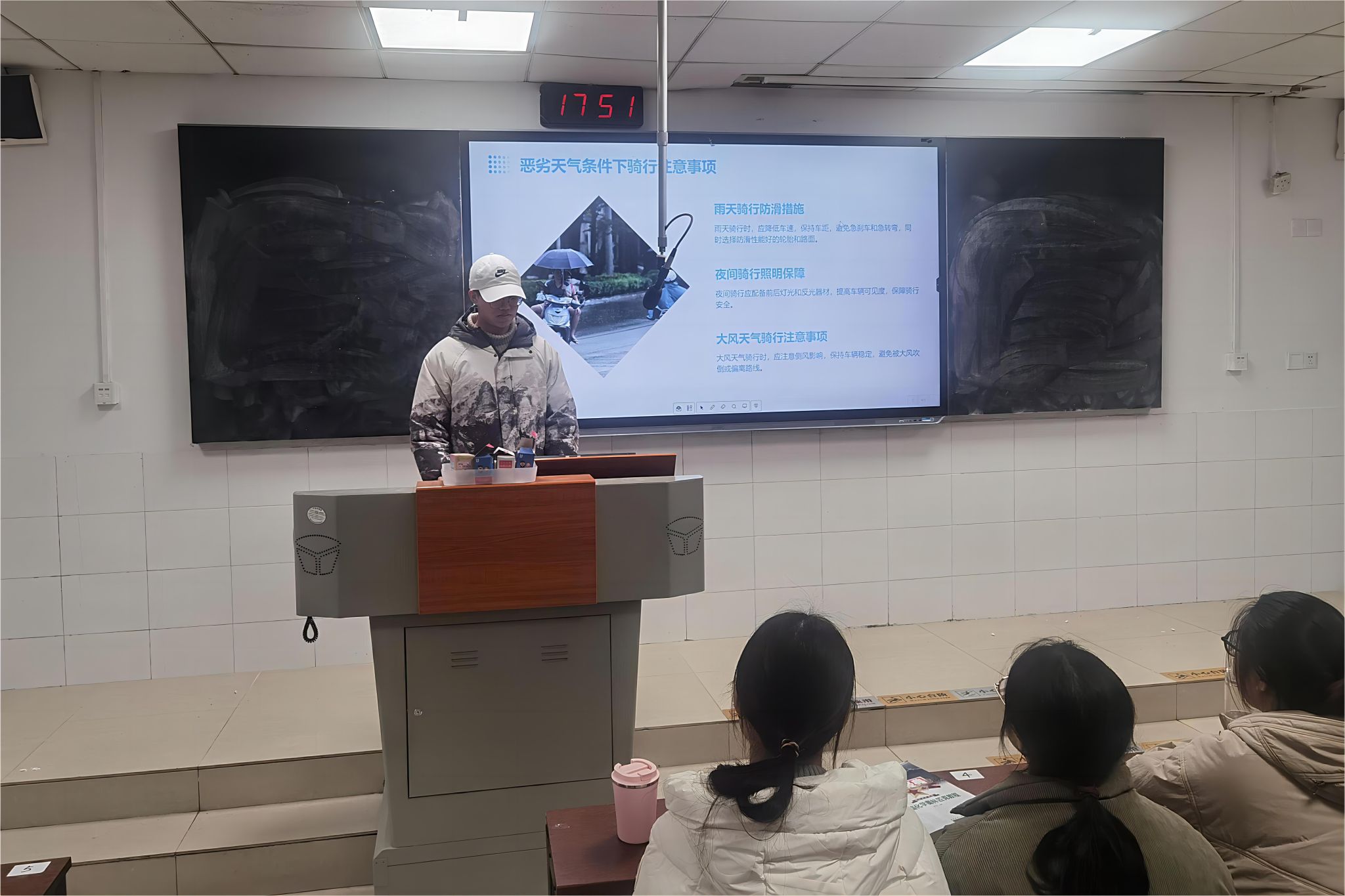 邹长玮以最近发生的安全事件引入主题,在电动车骑行安全方面,提醒同学骑电动车时要走非机动车道,佩戴头盔,遵守交通规则。班会结束,邹长玮再次强调同学们要重视自己的人身安全,时刻牢记安全第一。