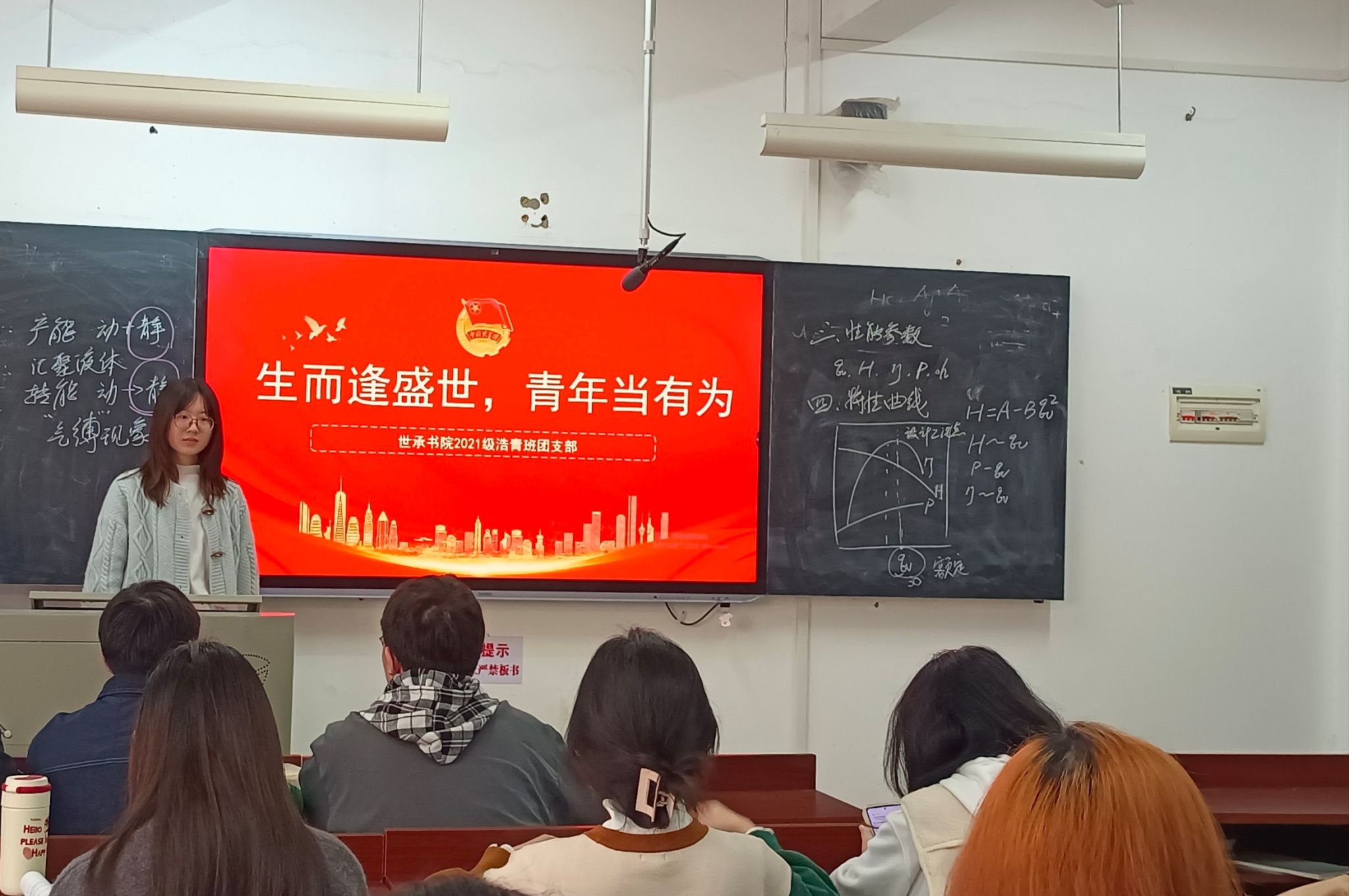(通讯员 樊优)3月20日下午,我院2021级浩青班在化工院210举行三月团日活动,此次活动旨在引领同学们认真学习“四个自信”,坚持“四个自信”思想,激励同学们的鸿鹄之志,砥砺前行。活动由团支书吴莎主持,浩青班团支部全体成员参加。