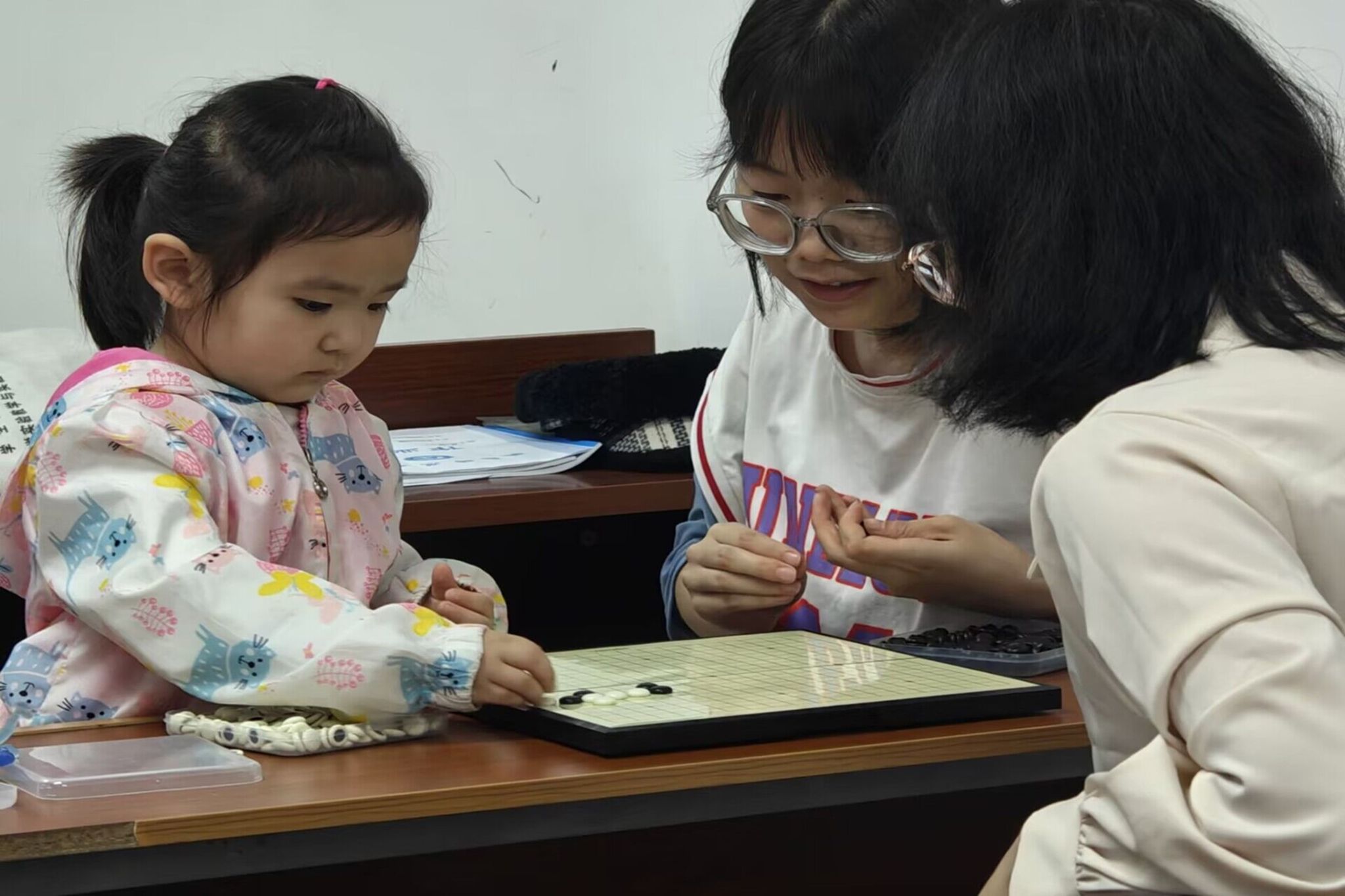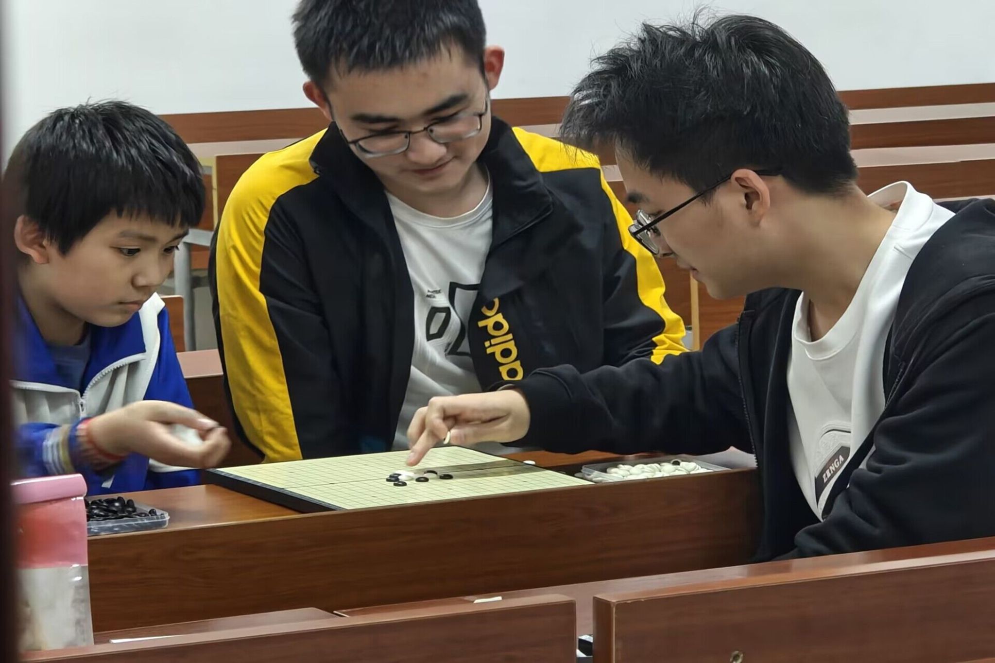活动伊始,志愿者们利用多媒体为会员和孩子们展示围棋的各种技巧和策略,并用专业软件演示不同走法的使用情形。此举旨在提高大家的围棋水平,使围棋技巧展示更为生动形象,也给予了大家学习和讨论的机会。志愿者们针对小朋友的学习情况进行询问,解答疑惑,确保每位小朋友都能有所收获。学习结束后,活动成员两两组队进行对弈,在实战演练中巩固棋艺知识,并且在与他人的交手中领略博弈的快乐。所有小组对弈结束,理事会进行了围棋知识科普,让大家不仅了解了围棋走法,还能知道每个走法背后的故事和智慧。活动结束,志愿者们清理活动现场并留影。