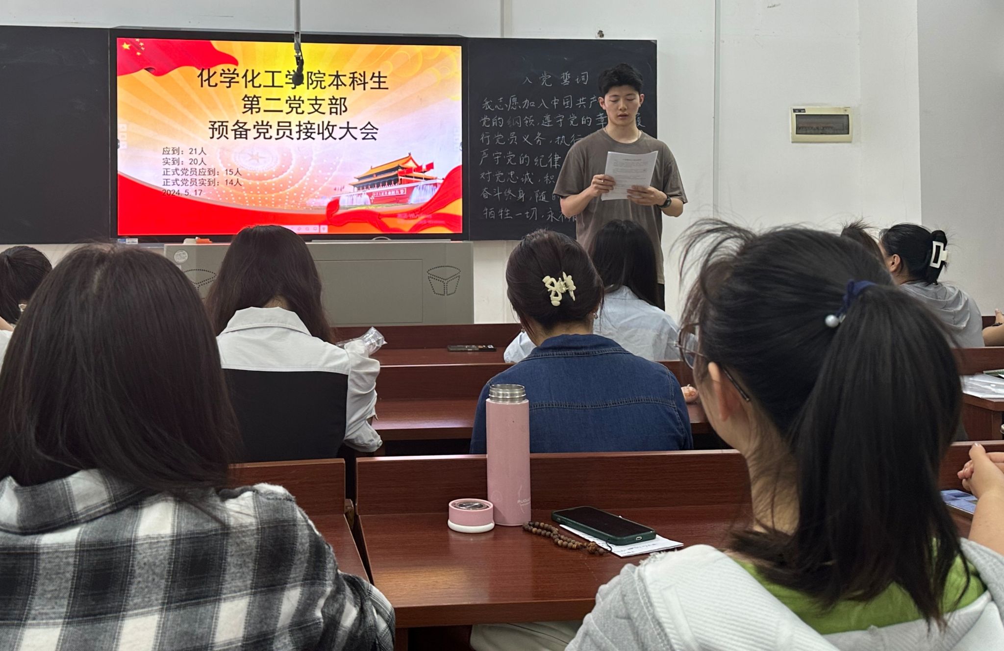 (通讯员 张钰佳)5月17日12时30分,yl6809永利官网本科生第二党支部于化工院217教室召开预备党员接收大会,讨论关于唐彬、陈伊睿等14名同志接收为预备党员的问题。此次大会由周锐主持,支部成员均准时参加。