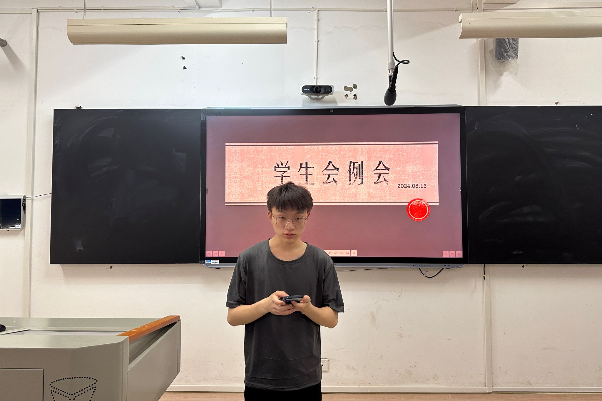 会议伊始,各部门依次上台汇报工作。办公室已经完成了毕业照片的拍摄;学发部已经发布了“用英语讲中国故事”活动的校级选拔赛的通知;健服部开展了趣味运动会香包摊位的活动,“以劳健心”志愿者的证明已经公示,微团辅参赛的报名信息也已经收集完毕;权益部宿舍收纳活动结束微推已经发布,活动报账材料总结也已经完成;文体部太极拳比赛的通讯稿已经在院网和星网发布,参赛人员名单也已经公示;宣传部制作了收纳活动的微推。最后主席团总结了近期学生会的工作,并给出了指导意见,同时提醒各部门准备换届材料。