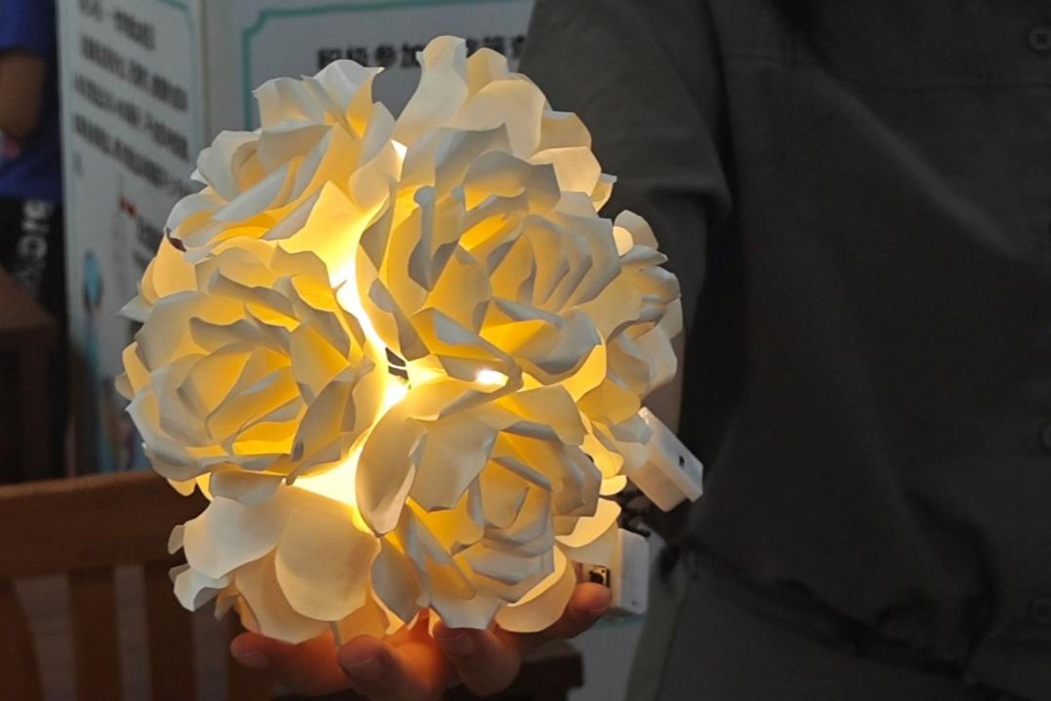 此次活动由绘心民俗社理事曹雪倩主持,其余理事会成员负责活动准备和现场布置。活动开始前,志愿者们向小朋友们介绍了花灯的历史背景,并讲解了此次玫瑰花灯的制作步骤。在志愿者的耐心指导下,小朋友们剪出一片片花瓣,将其拼接成玫瑰花,并充分使用材料装饰花灯,制作出不同风格的花灯。经过几个小时的认真制作,一个个精致的玫瑰花灯在小朋友们的手中呈现出来。在活动最后,小朋友们手捧自己的玫瑰花灯,和志愿者们一起拍照留念,记录下这一愉快的时刻。