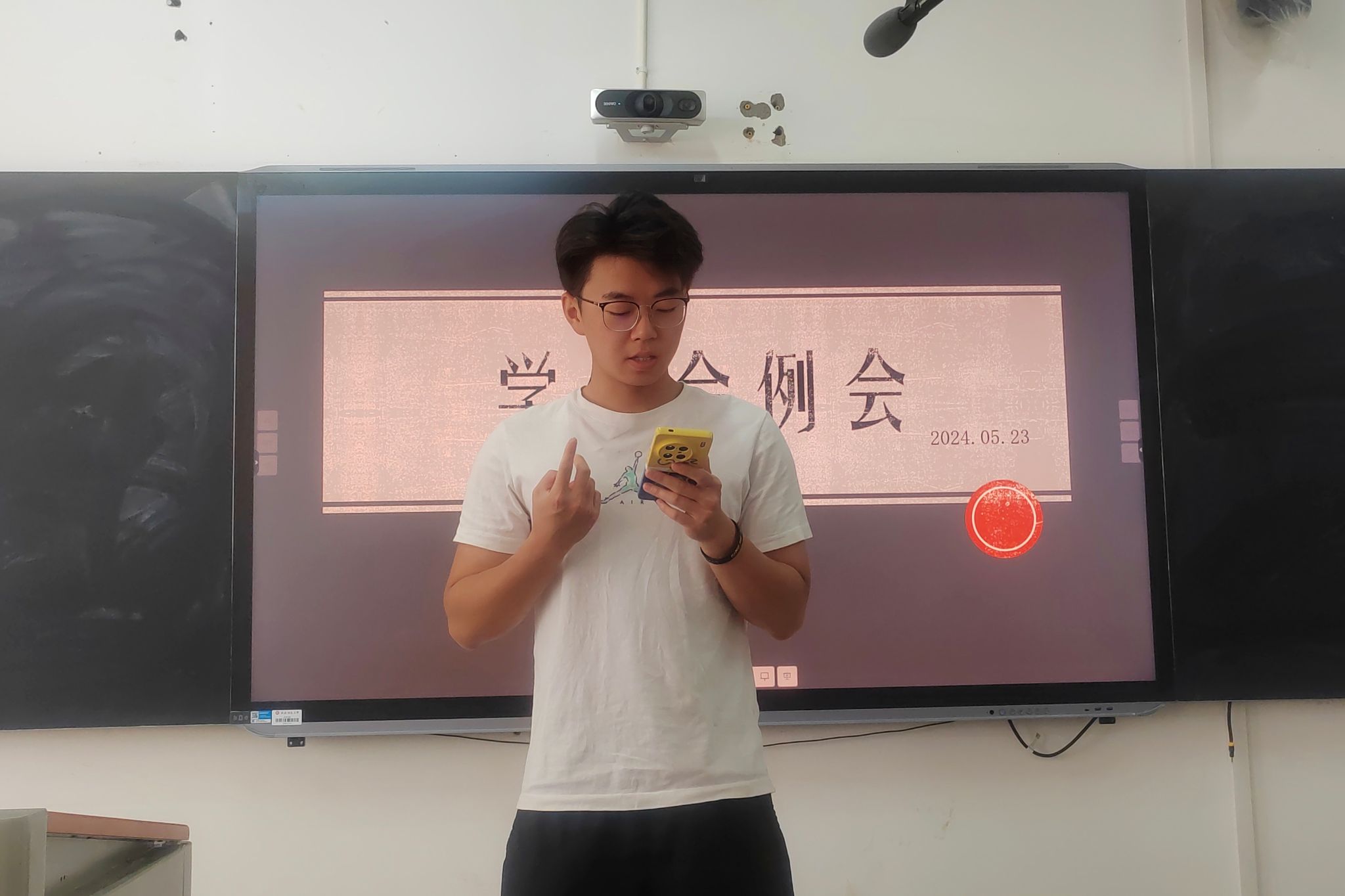 学发部干事李嘉龙汇报工作