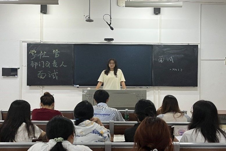 (通讯员 司方乐)6月3日中午12时30分,yl6809永利官网学生社团管理服务中心部门负责人换届面试于化工院117教室举行。学社管指导老师谢云霞、向兴坤及现任学社管主任与各部门部长担任面试官,12位候选人参与此次面试。