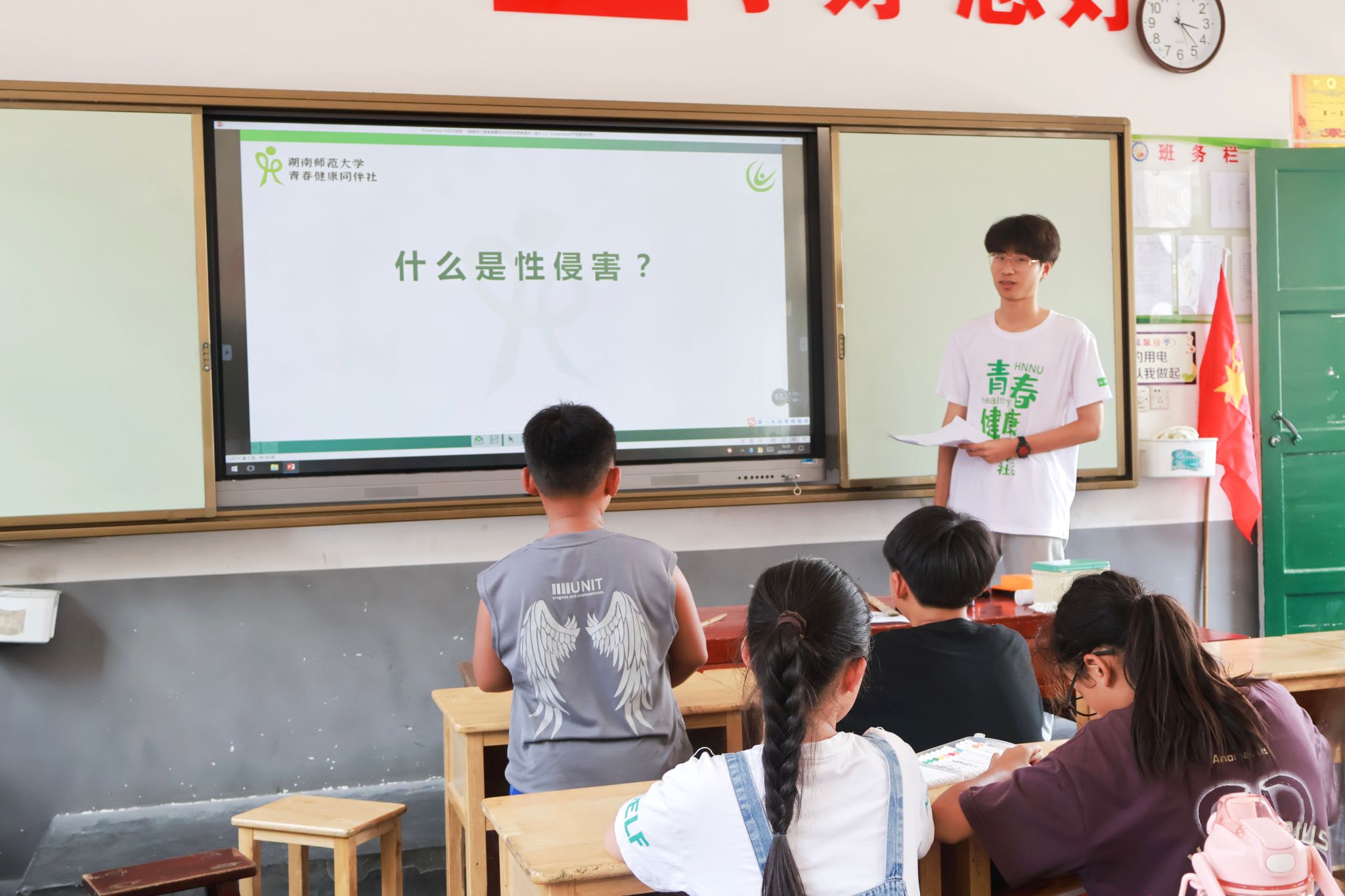 (通讯员 刘文琦 李琴辉)为了加强未成年人的自我保护意识,提高他们在面对性侵害时的防范和应对能力,7月21日下午,yl6809永利官网赴益阳市安化县暑期社会实践团——“星火接力,丹心筑梦”队在马路镇完全小学夏令营五年级的全体学生中开展青春教育讲堂活动。活动由实践团调研组组员孙金鹏和实践团调研组组员李艳泽主持。