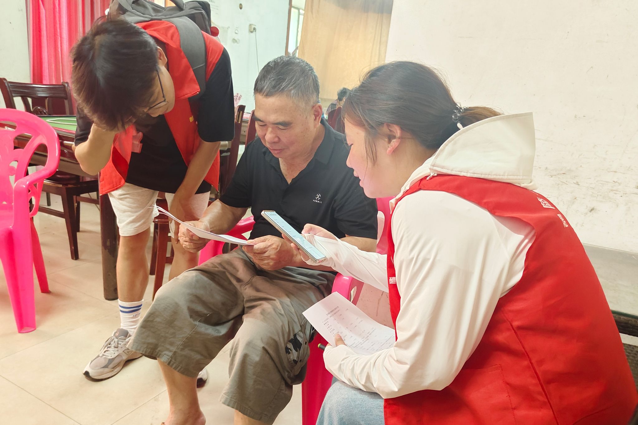 调研组成员指导居民填写问卷