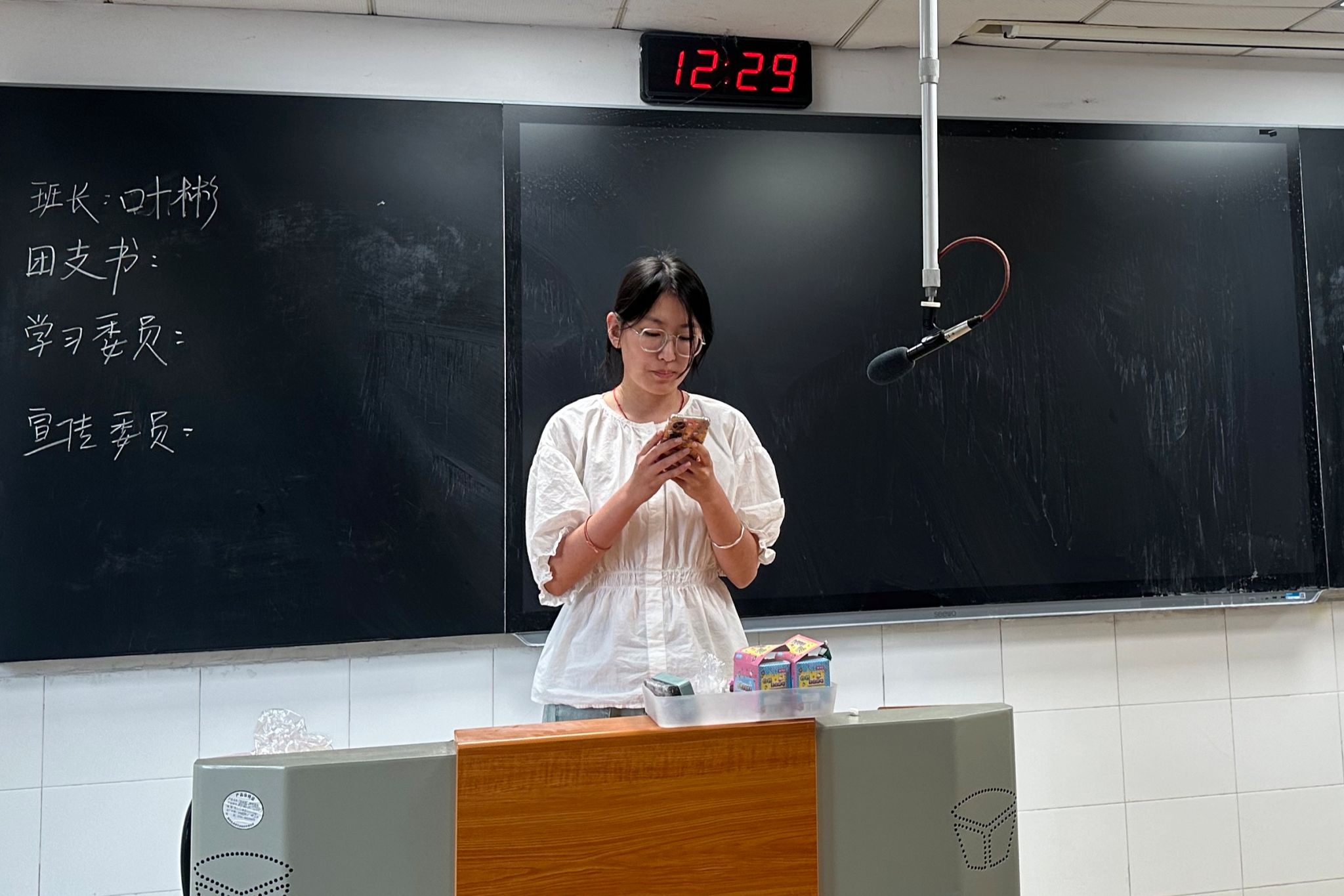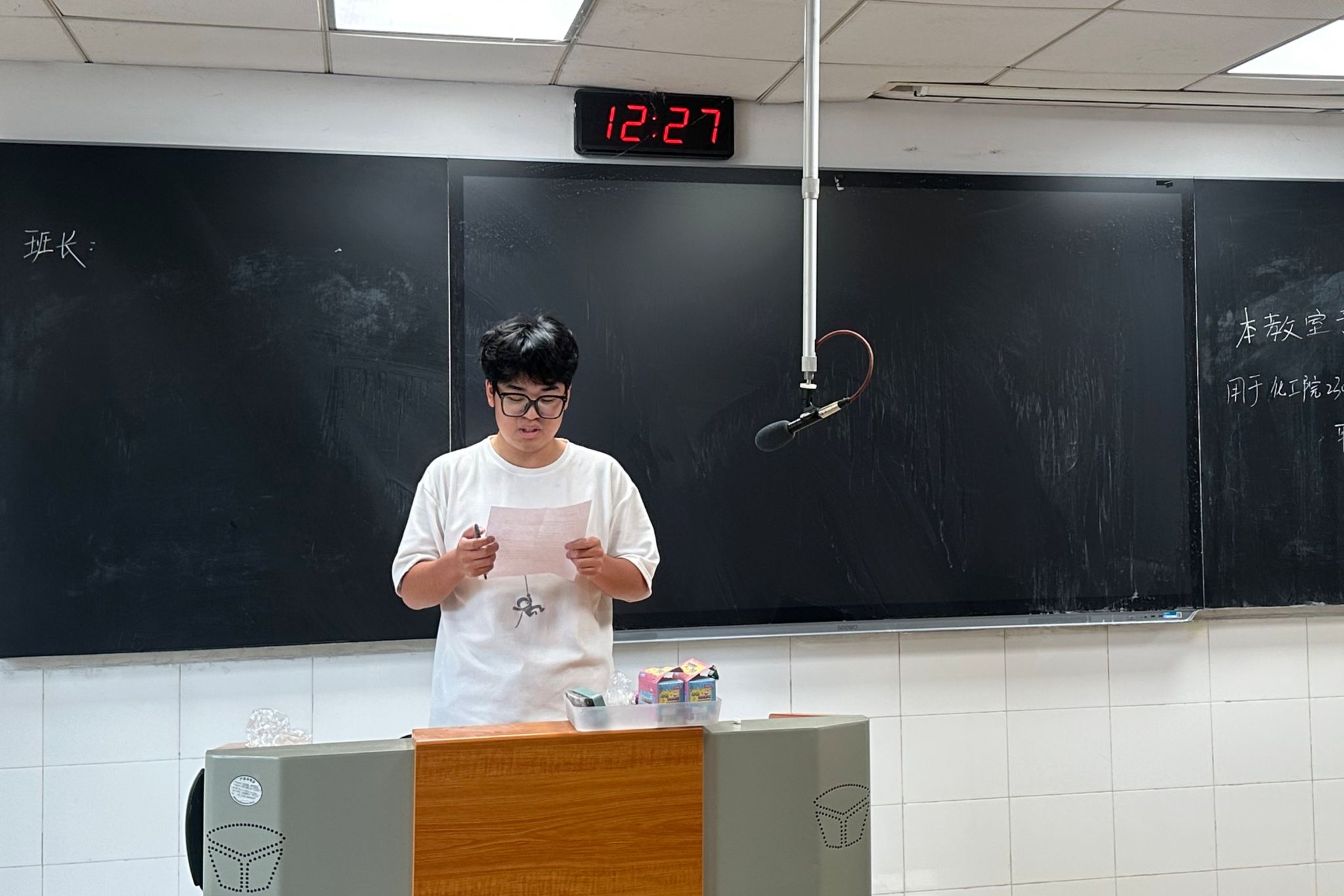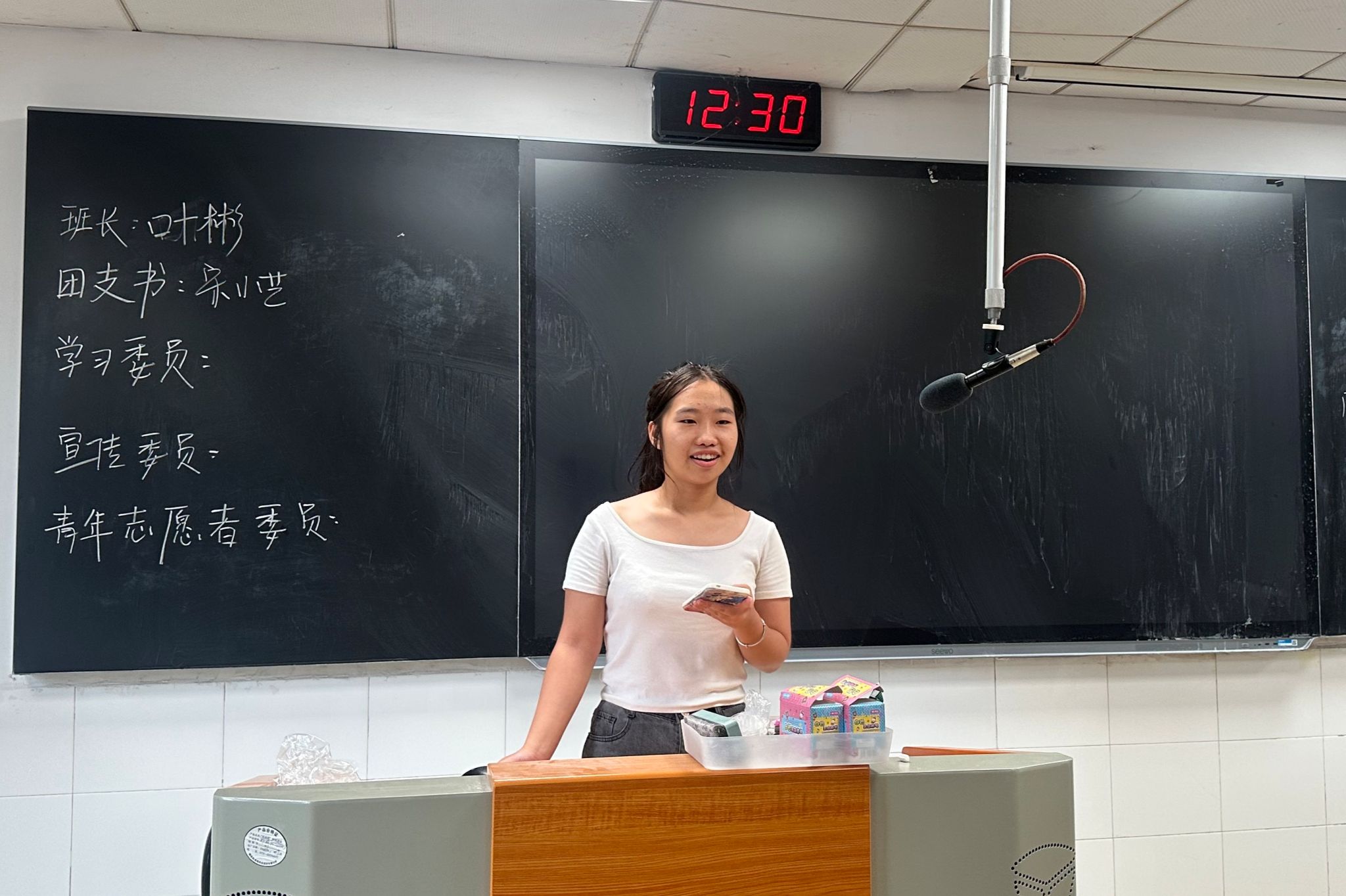 班会伊始,张晓晨将各班委职务的名称依次呈现在黑板上,并有序组织参选学生上台发言。参选学生在台上阐述自己对所竞选职务的理解以及自己的竞选优势,其余学生在台下倾听发言。此次班委换届选举采用的是民主匿名投票制。所有参选学生发言结束后,廖圣杰发给每位学生一张纸,并组织大家投票。经唱票并统计,2302班班委最终确定为叶彬、宋小艺、刘甜果等九人。