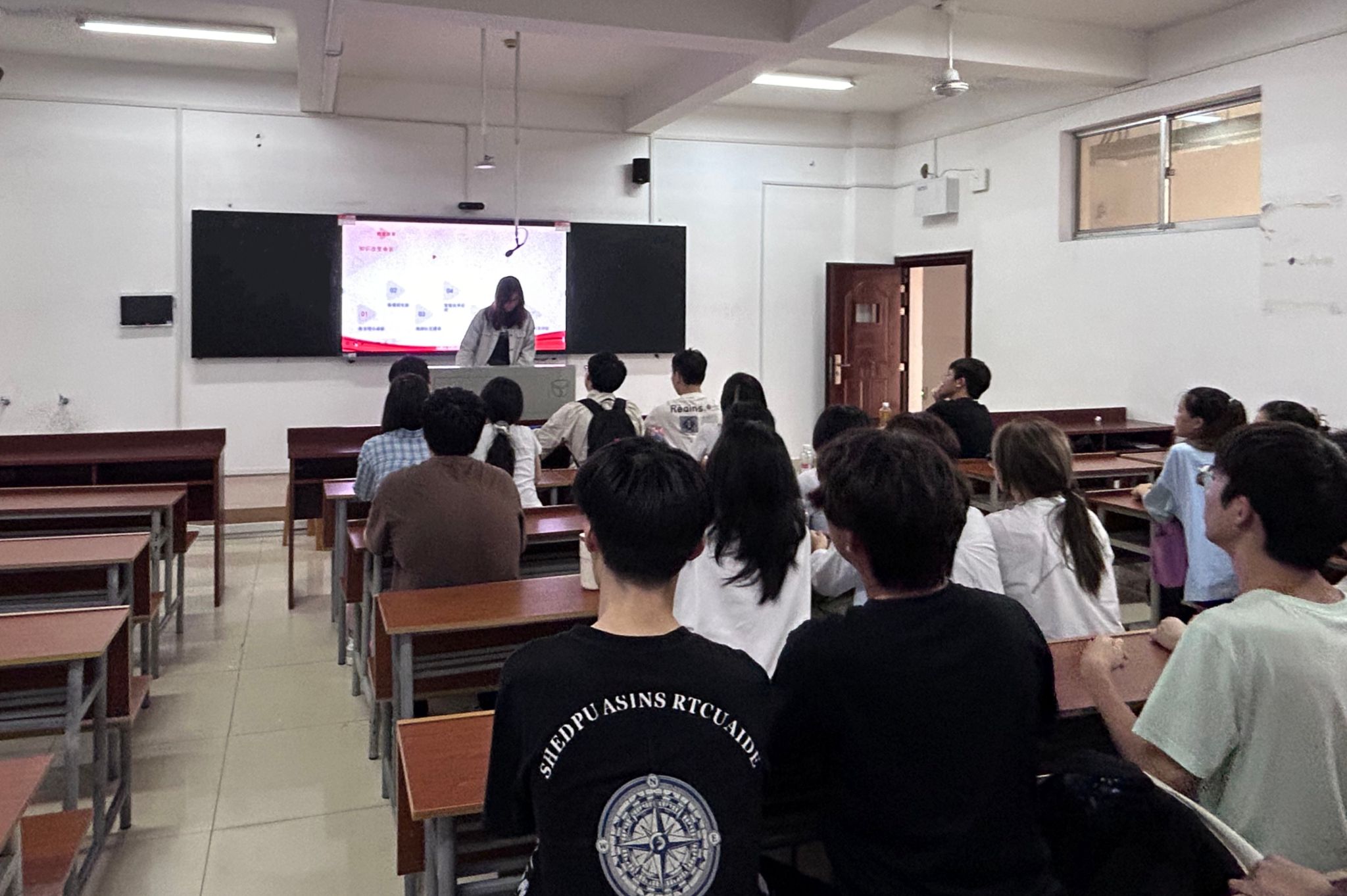 活动伊始,滑子曦为此次活动致开幕词,交代活动背景,从理论和现实两方面介绍了学习此次团课的目的与意义。滑子曦组织同学们观看开国大典视频并唱国歌,引领广大团员青年在矢志奋斗中谱写新时代的青春之歌,努力成长为新时代好青年,为社会服务、为国家服务。支部成员相互交流心得,并由班长顾全煜作为代表总结此次团课的收获。