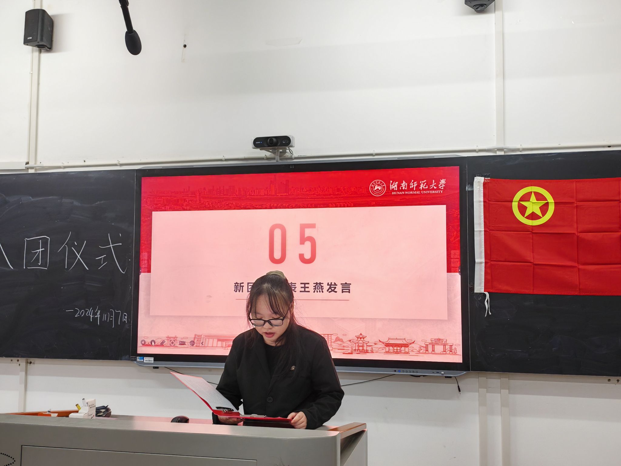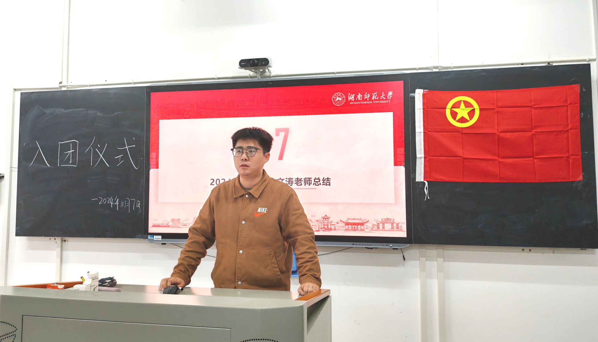 (通讯员 潘莎莎 周佳)挺膺担当砺青春,凝心聚力担使命。11月7日12时30分,我院2024年新团员入团仪式在化工院117教室举行,2024级辅导员孙文涛出席此次活动。参加会议的还有2024年新发展团员,第十五届“问鼎”团校全体成员,院团委青年发展工作部,组织部和基层组织建设部成员。组织部陈秋潭主持仪式。