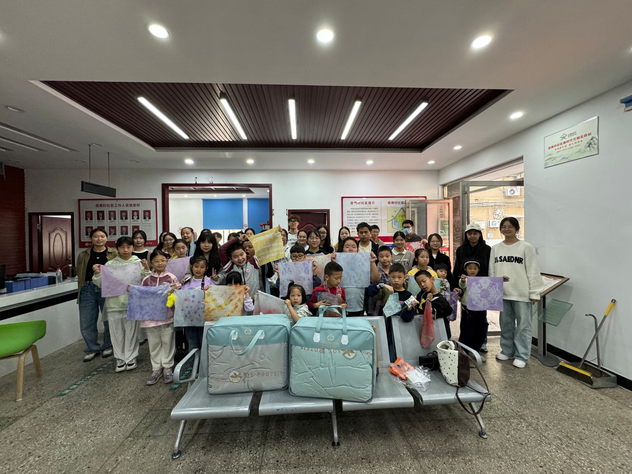 此次扎染活动由志愿者余微为小朋友们讲解扎染的基本方法和步骤,并将小朋友和志愿者进行分组。在活动过程中,小朋友们将传统技艺与个人创意相结合,创作出了一件件色彩斑斓、充满个性的扎染作品。扎染完成后,志愿者王雅欣组织小朋友们展示扎染作品,并为小朋友分发糖果等小礼品,其他志愿者进行活动场地的清理。