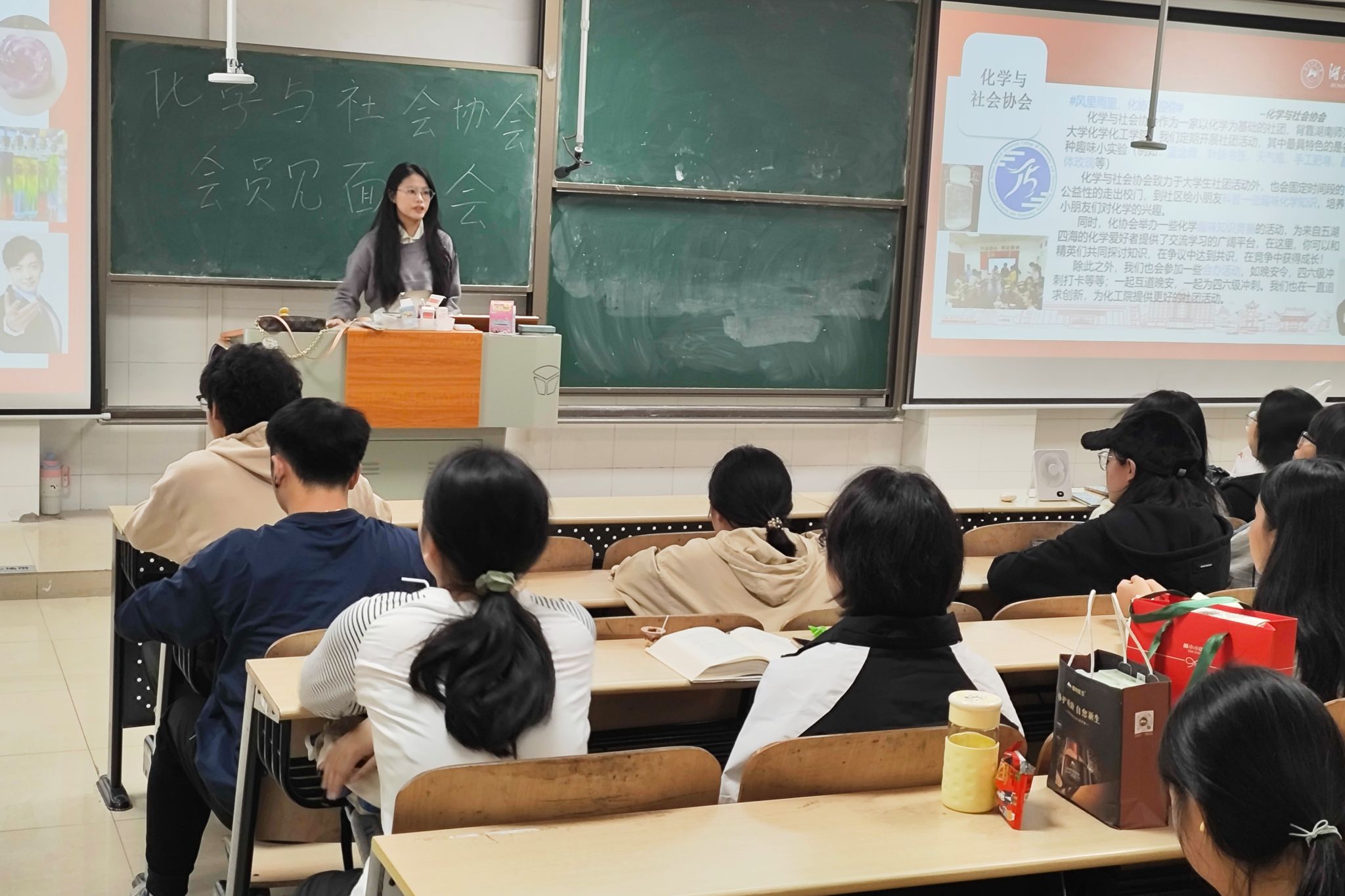 (通讯员 蒋依欣)11月16日19时,yl6809永利官网化学与社会协会在至善楼110教室举行会员见面会暨第一次会员会议。此次见面会由理事长蒋依欣统筹规划,理事会成员积极组织开展,化协全体会员参加。