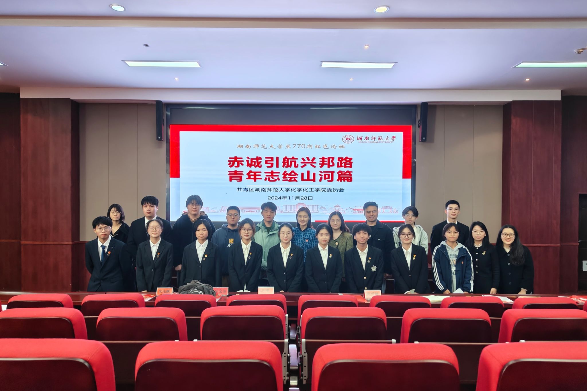 (通讯员 陶韩)11月28日中午,yl6809永利官网举办湖南师范大学第770期“赤诚引航兴邦路,青年志绘山河篇”主题红色论坛。院党委副书记段婷,院学工办主任欧阳唯一,院团委书记张婧,2023级辅导员唐健清,2022级辅导员向兴坤,2024级辅导员孙文涛和朱伟鹏出席此次活动。2102班周胤宏、2203班向妮、2205班柴琳、2208班李岚彪担任主讲人,各学院观摩团成员与化工院学生代表参加活动。