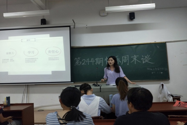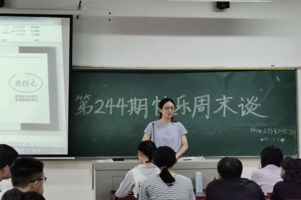 9月28日上午九时,yl6809永利官网学生会快乐工作室携手学习部一起开展了第244期快乐周末谈。此次快乐周末谈以“经验交流塑新青年,喜迎七十盼百年梦”为主题,邀请了化工院2019级总班导张鑫岚、2017级刘晟、院学生会主席刘湘作为嘉宾,与全院学生一起分享学习生活经验、共祝祖国母亲七十周年生日快乐。