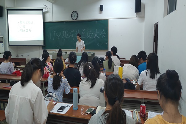 肖嘉慧首先讲述本学期学习任务,并对期末成绩优异的同学进行了奖励;肖嘉慧表示新学期将开展模拟课堂的班级任务。翁凯栋则上台谈了自己学六级的经验方法。最后,郑晚君表示大三是至关重要的一年,希望大家好好努力。