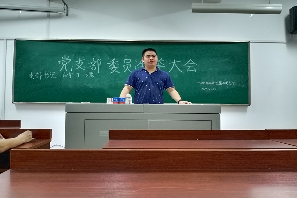 9月20日上午,我院2016级本科生党支部委员选举大会在化工院218教室举行。此次会议由陈义香主持。化工院党委副书记耿自强,2016级本科生辅导员熊慈,2016级工科班全体党员和预备党员参与此次会议。