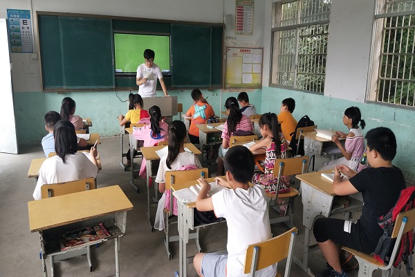 7月11日上午,yl6809永利官网赴岳阳市分水垅小学暑期社会实践团的全体队员们有条不紊的做着自己的工作,组织各班同学上课。