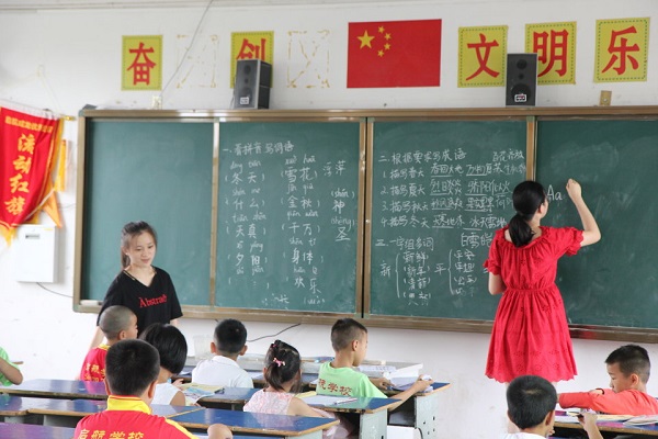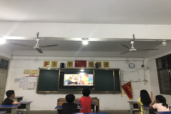 7月14日晚上7时40分,yl6809永利官网学生社团联合会赴衡阳市祁东县成龙学校暑期实践团成员尹丽康在教室带领成龙学校的五年级同学们观看电影《疯狂动物城》。副班主任谭祖灵有序地维持观影秩序。
