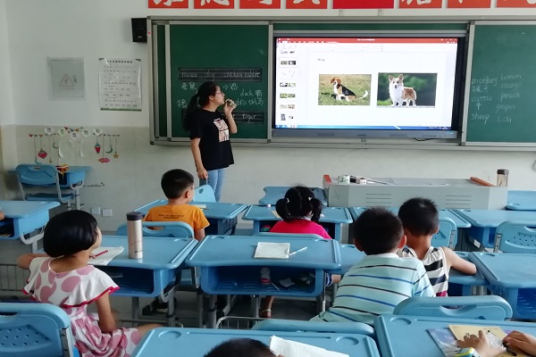 因小班基础薄弱,还未正式学习英语。此次授课主要以趣味性内容为主,谭伟玲从水果单词入手,再到动物单词,教会同学们基本的发音与书写,并通过播放英文歌曲来激发同学们的兴趣。课后,布置相关英语作业。同学们学习热情高涨,教学任务得以完成。