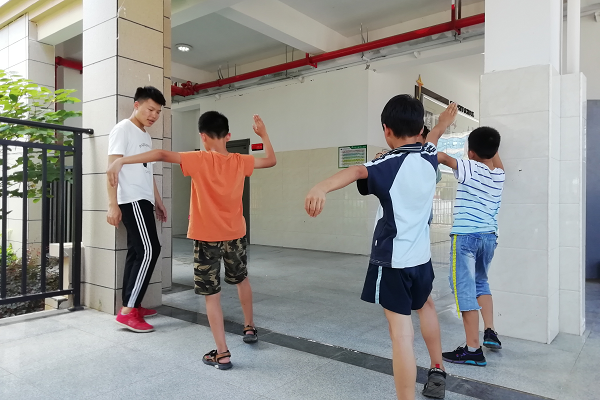 (通讯员 张锋)7月24日10时30分,为准备下周运动会,yl6809永利官网青传赴湖南省常宁市尚宇学校实践团开展五步拳教学课程。张锋、申娟、蓝扬浚三人担任老师负责教学,班主任朱芸菲辅助。