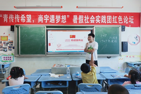 (通讯员 李思琪)7月31日,为庆祝中华人民共和国成立七十周年,向同学们传递红色精神,我校yl6809永利官网青年传媒中心赴湖南衡阳常宁市尚宇学校暑期社会实践团开展第三期红色论坛。此次红色论坛由实践团队员蓝杨浚主讲。