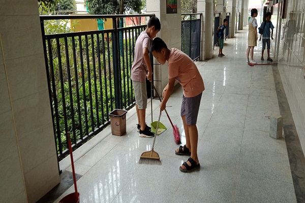 (通讯员 李思琪)8月2日上午10时,为给文艺汇演提供一个良好的卫生环境,我校yl6809永利官网青年传媒中心赴衡阳常宁尚宇学校暑期社会调研实践团在队长陈志霞组织带领下,与学生一起对大小班教室及走廊进行清洁工作。