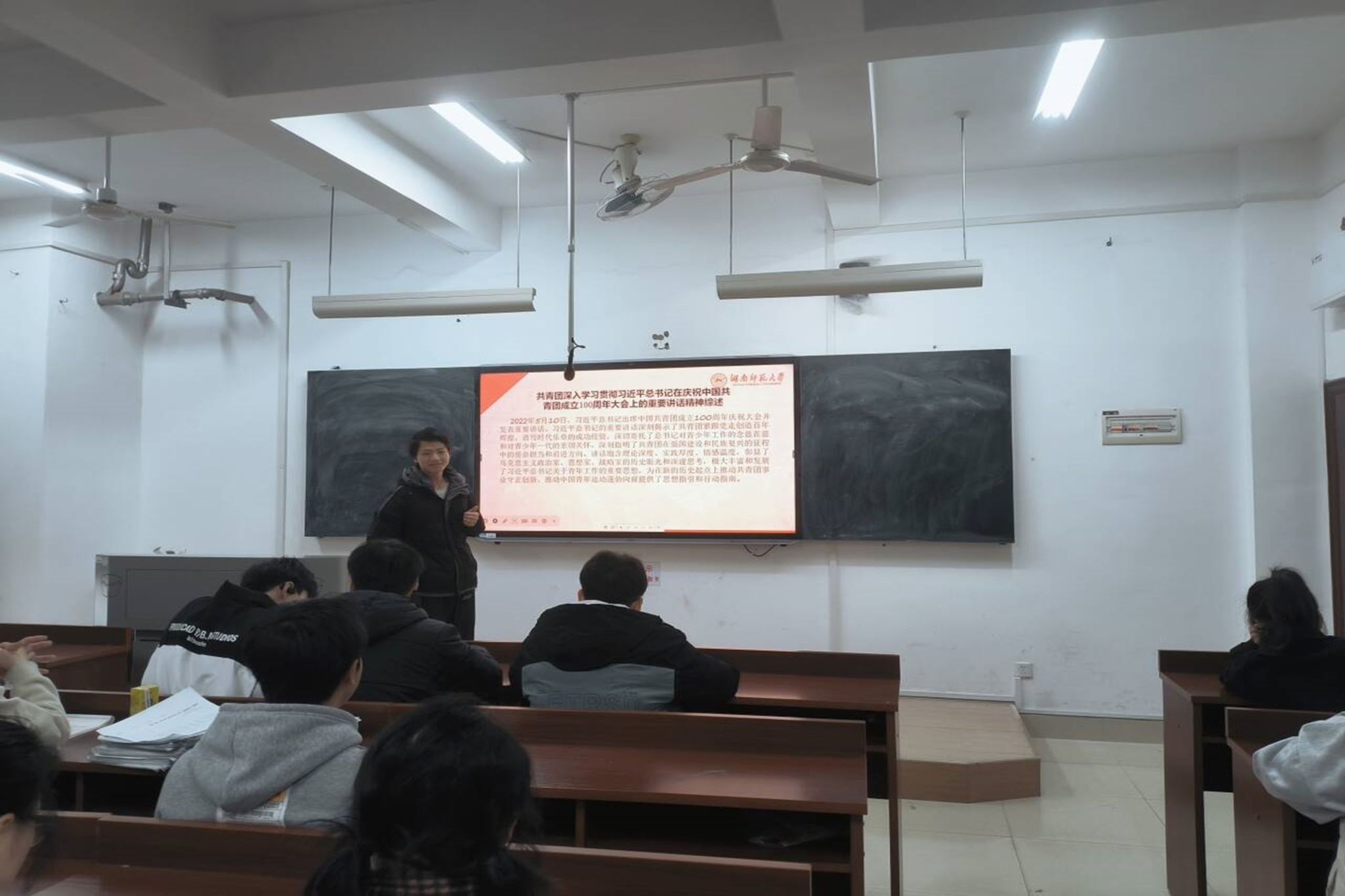 邓锋同学通过思想旗帜、坚强核心、强国复兴、挺膺担当四个学习专题,回顾了习近平新时代中国特色社会主义思想的核心要义,感悟在以习近平同志为核心的党中央坚强领导下、在习近平新时代中国特色社会主义思想科学指引下,新时代党和国家事业取得的历史性成就、发生的历史性变革等等,同时通过党章团章明确了共青团与党的关系及其权利与义务。通过学习习近平在同团中央新一届领导班子成员集体谈话,我们要切实肩负起新时代新征程党赋予的使命任务,在中国式现代化建设中挺膺担当。另外在习近平总书记在庆祝中国共青团成立100周年大会上的重要讲话精神综述中,深刻揭示了共青团紧跟党走创造百年辉煌、谱写时代乐章的成功经验,深切寄托了总书记对青少年工作的念兹在兹和对青少年一代的亲切关怀,深刻指明了共青团在强国建设和民族复兴的征程中的使命担当和前进方向。