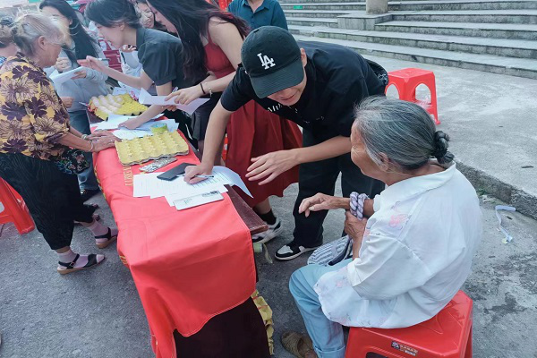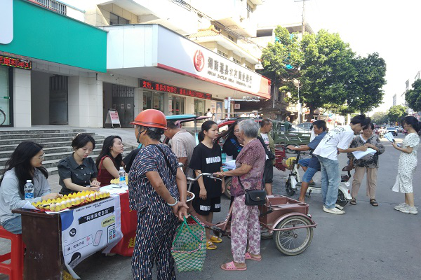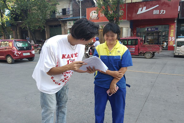 活动伊始,在寿雁镇政府的协助下,实践团搭建好活动场地、简单分配工作后,部分成员在宣传点周边发放宣传单进行科技应用有关知识的初步讲解,并带领居民到宣传点开展进一步的宣讲活动。另一部分成员在宣传点邀请当地居民填写科技技术水平调查问卷,并针对调查问卷体现的问题进行进一步的宣讲。