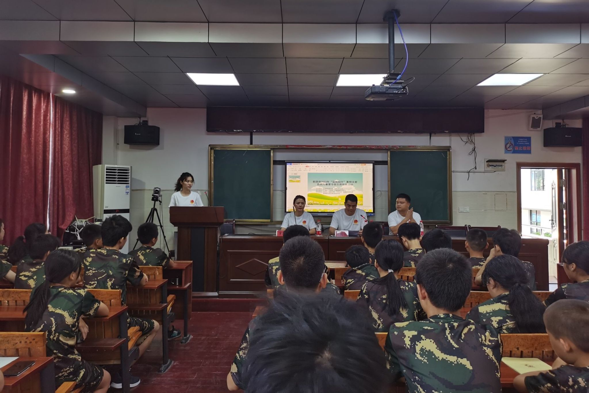 (通讯员 邹慧媚)7月13日上午9时,“青春正‘邵‘,传承向阳”——yl6809永利官网赴邵阳市新邵县暑期社会实践团携新邵县委于严塘镇中学举行了夏令营开营仪式。新邵县民政局局长刘抗震,严塘镇党委副书记、镇长刘蓓,共青团新邵县委罗洁出席此次仪式,实践队全体成员及夏令营全体学生参加,仪式由队长罗雅文主持。