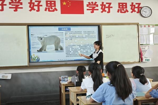 为激起学生们的学习兴趣,潘海敏通过丰富多彩的海洋生物图片,带领学生们走进绚丽的海底世界,并结合图片讲解各种生物的外形特点,为学生们科普各式各样独特的海洋生物。潘海敏还着重介绍了物种濒危等级分类,同时潘海敏把海洋生物的濒危等级与人类的过度捕捞、破坏环境相联系,明确地告诉学生们不可以非法捕捞海洋生物并且要爱护海洋环境,学生们也表示出对非法行为的反对。