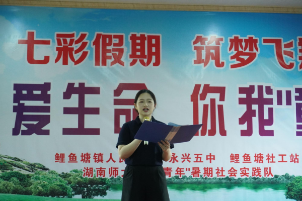 (通讯员 郭林龄)为期15天的“三下乡”活动即将结束,为展示鲤鱼塘镇孩子们的风采,检验这段时间特色课程的开展效果,7月20日上午,“麓山青年”暑期实践队在鲤鱼塘政府开展以“珍爱生命,你我‘童’行”为主题的文艺汇演,永兴县团委书记谷毅琳,鲤鱼塘镇镇长李桂枝,yl6809永利官网团委书记张婧等领导出席此次文艺汇演。