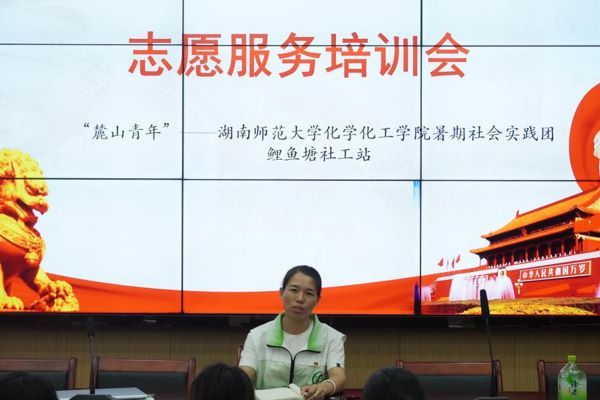 (通讯员 郭林龄 袁丞庆)7月15日上午9时,湖南师范大学”麓山青年“暑期实践队联合鲤鱼塘镇政府社工站开展志愿服务培训活动,社工代表邓燕君为湖南师范大学“麓山青年”暑期实践队全体队员开展了此次培训,双方围绕如何更好地开展志愿服务活动展开交流学习。