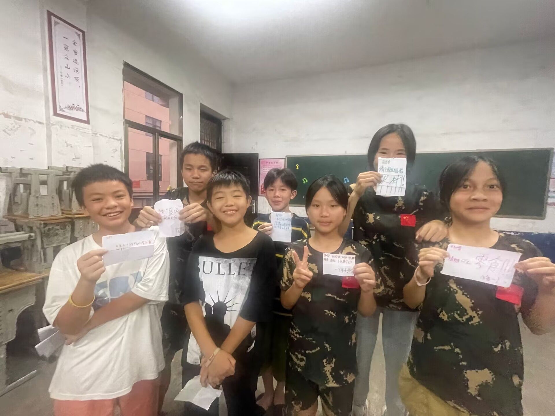 37名夏令营孩子通过一张张纸片和不同颜色的彩笔绘写心中所愿。孩子们各有所想,各有所愿。活动结束后,实践团队员对心愿进行了整理总结并纷纷认领孩子们的微心愿,其中,许愿最多的是零食饮料和文具,还有小朋友希望自己的成绩能越来越好,家人身体健康,生活越来越幸福。孩子们述说写下自己的心愿,实践团队员表示在力所能及范围内,将尽自己最大的努力去实现孩子们的微心愿,不断鼓励他们,引导他们成为向上向善的人。