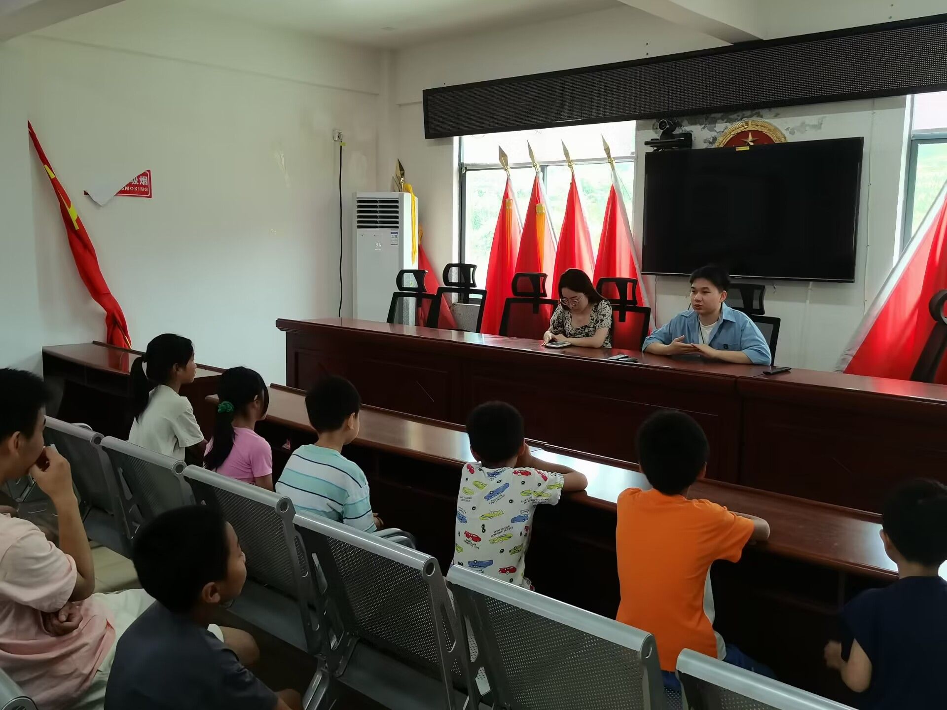 在开展宣讲会的过程中,队伍分成三个小组,分工负责不同的工作内容。宣传组组长毛慧负责防溺水教育的内容宣讲,小组成员向小朋友们介绍了一些溺水案例,并告知他们在他人或自己遇到溺水情况时的合理做法,最后通过问答的形式加深了孩子们对于防溺水知识的理解和记忆。防性侵调研课题组长彭琦瑶针对参与宣讲会的儿童年龄阶段,介绍了适龄的性骚扰、性侵害内容以及作为小朋友在面对不合理请求时应该怎么做,对当地孩子普及了性教育的知识,提高了孩子们的防性侵意识。副队长刘子杰带领小组成员对龙溪铺镇的空巢老人进行走访宣讲,在了解了老人的基本生活状况之后,向他们简单介绍了电信诈骗的一些手段和套路,温馨叮嘱老人们要在思想上高度重视电信诈骗所带来的严重后果,最后该小组成员向接受宣讲的老人们提供了一些防范诈骗的技巧及方法。