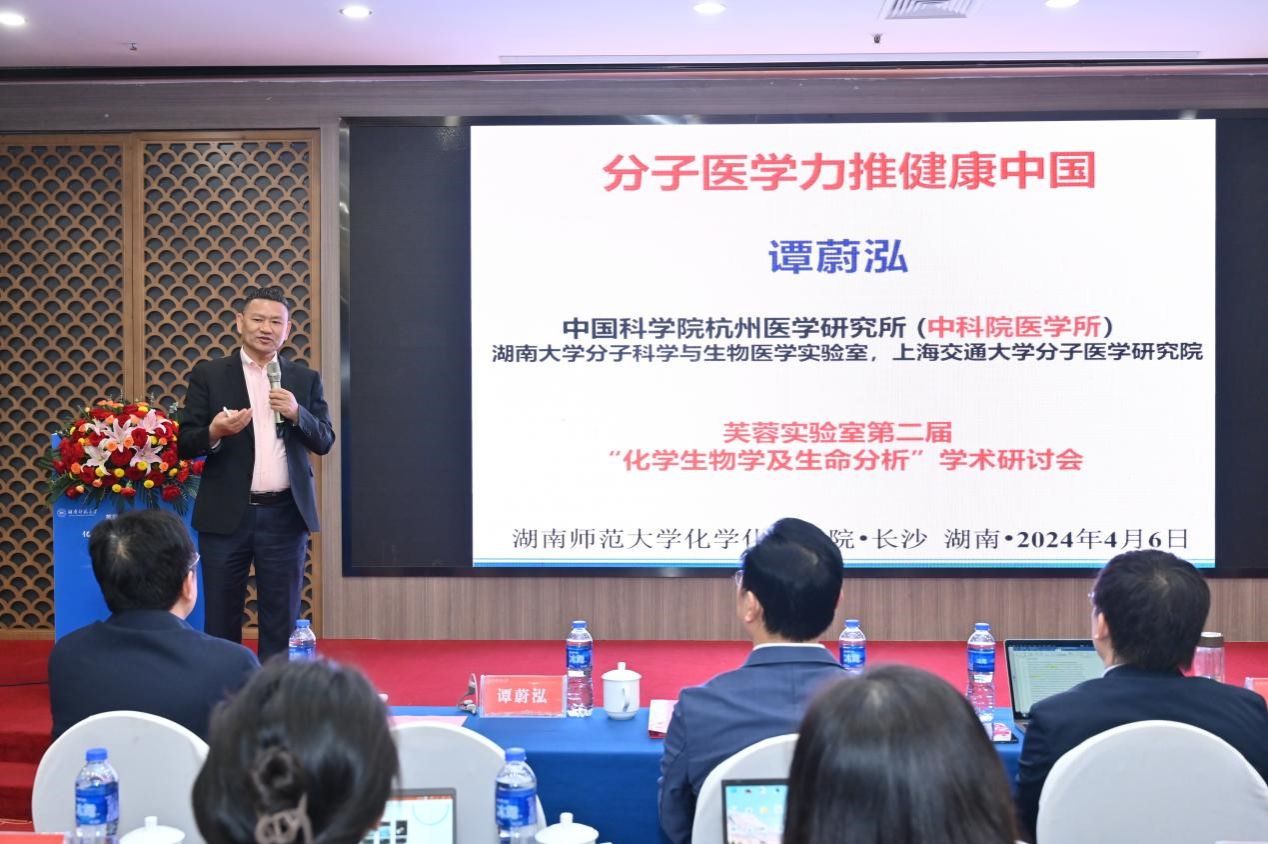 开幕式后,中国科学院院士谭蔚泓作题为《分子医学力推健康中国》的报告。他从健康中国时代的分子科学、健康中国和信息化时代的分析化学、健康中国时代的分子医学等三个方面深入分析了当前我国分子医学的研究前沿和发展现状,阐明分子医学对提升我国医疗健康事业、改善人民健康水平、推动健康中国战略落实落地的重要意义,并就分子医学领域加快实现核心技术自立自强、进行原创性引领性科学研究和技术攻关、坚决扛起为中国人民的健康保驾护航的责任担当作了深入阐述。