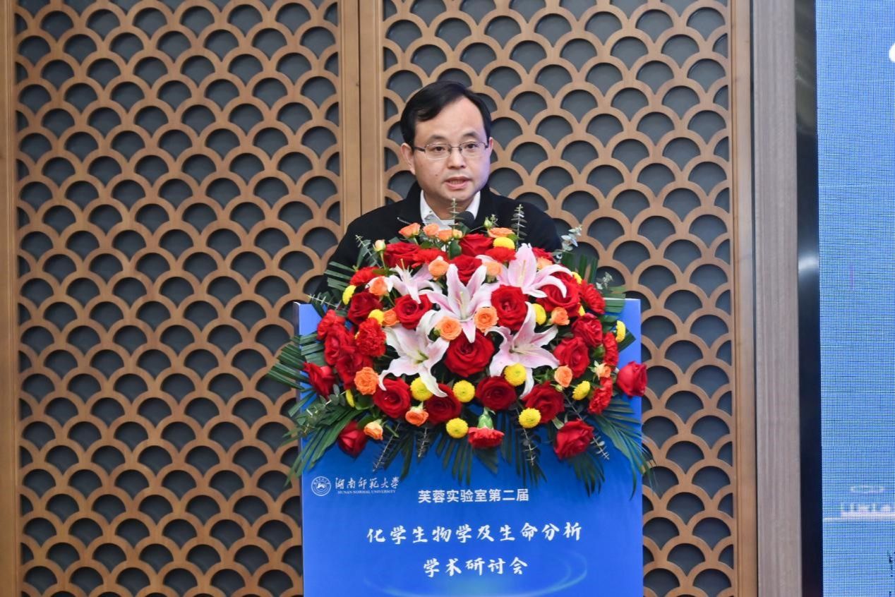 陈松向长期以来对湖南省科学技术的进步给予指导和帮助的各位专家表示衷心的感谢。他指出,芙蓉实验室和湖南师范大学联合举办本次“化学生物学及生命分析”学术研讨会是对我省科技发展的一种担当体现。他相信,通过本次学术会议的探讨与交流,会进一步促进化学生物学在各学科领域的交叉与渗透,为推动湖南省化学生物学与生命分析的发展提供有力支撑。