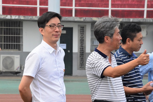 耿自强向第一方阵的同学们强调要肩负责任,艰苦训练,以优异的成绩向祖国谢礼。
