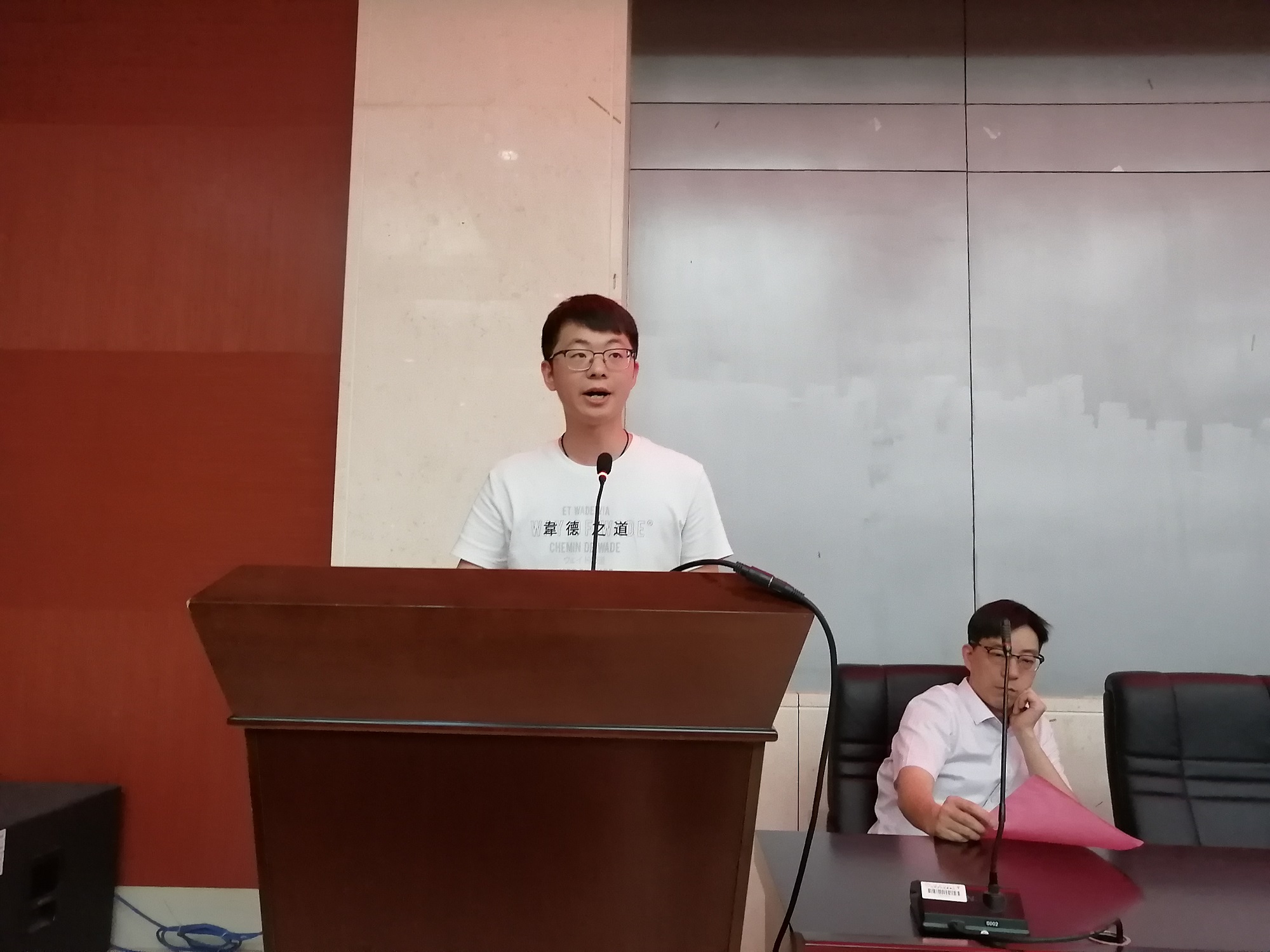 博士生代表蒋达波同学发言,他分享了自己硕士研究生生涯的收获并对研究生新生提出了较高的期许。随后是硕士研究生代表杨魏鹏同学发言,他结合自身经历分析了为什么要读研,和读研可以带来什么,他表示研究生的学习应该注重独立性和创新性。