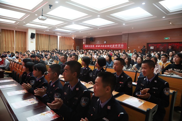 此次宣讲活动由yl6809永利官网、资源与环境科学学院、物理与电子科学学院、历史文化学院和工程与设计学院团委组织部组织开展,邀请到了湖南警察学院长安实践团,以宣传禁毒、安全防范等为主要内容,提醒同学们警惕身边可能存在的威胁。
