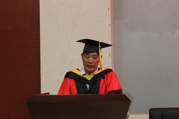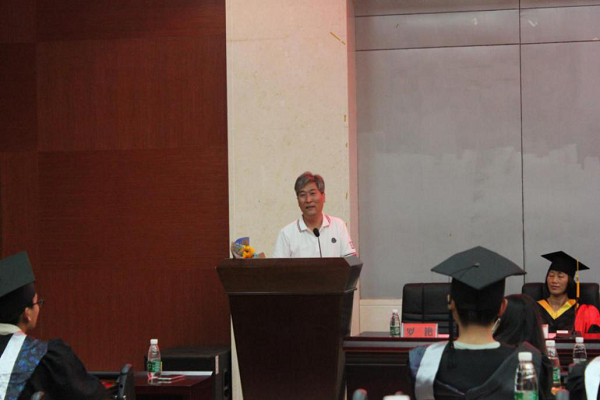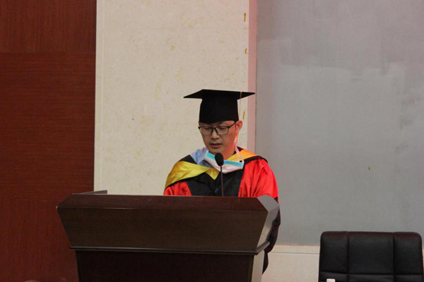 教师代表王健博教授分享了自己的求学经历和在师大工作的点点滴滴,鼓励毕业生勇敢面对成功和失败,在学术上勇攀高峰,为国家创造更大的价值。