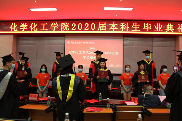 学工办全体辅导员,化工院2020届本科毕业生代表100余人参加典礼。