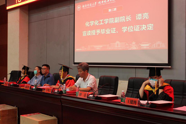 副院长谭亮宣读《关于颁发罗云春等229名同学本科毕业证书的决定》《关于2020年6月授予学士学位的决定》。