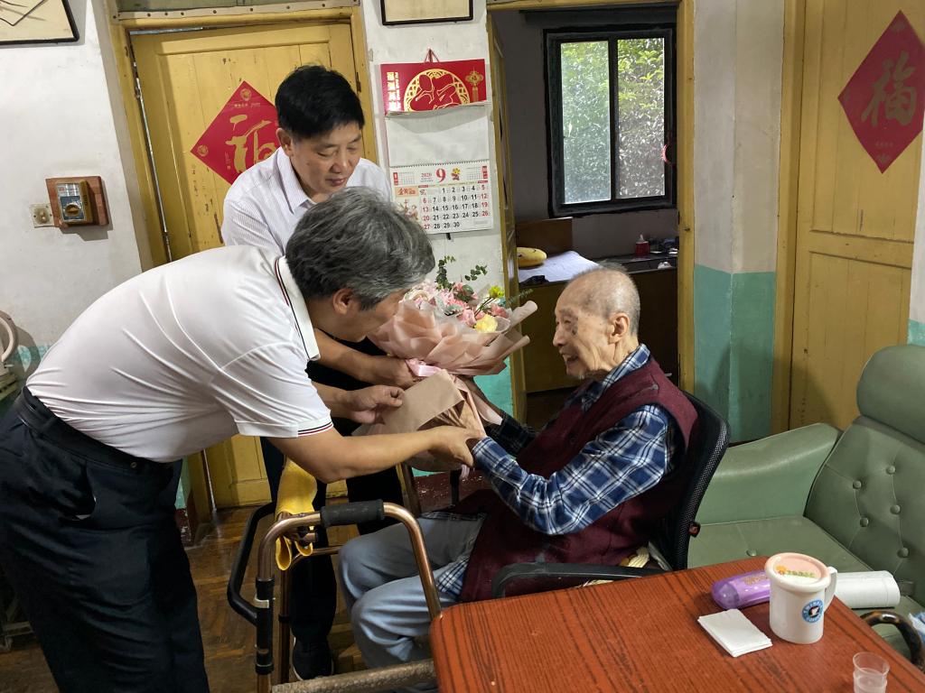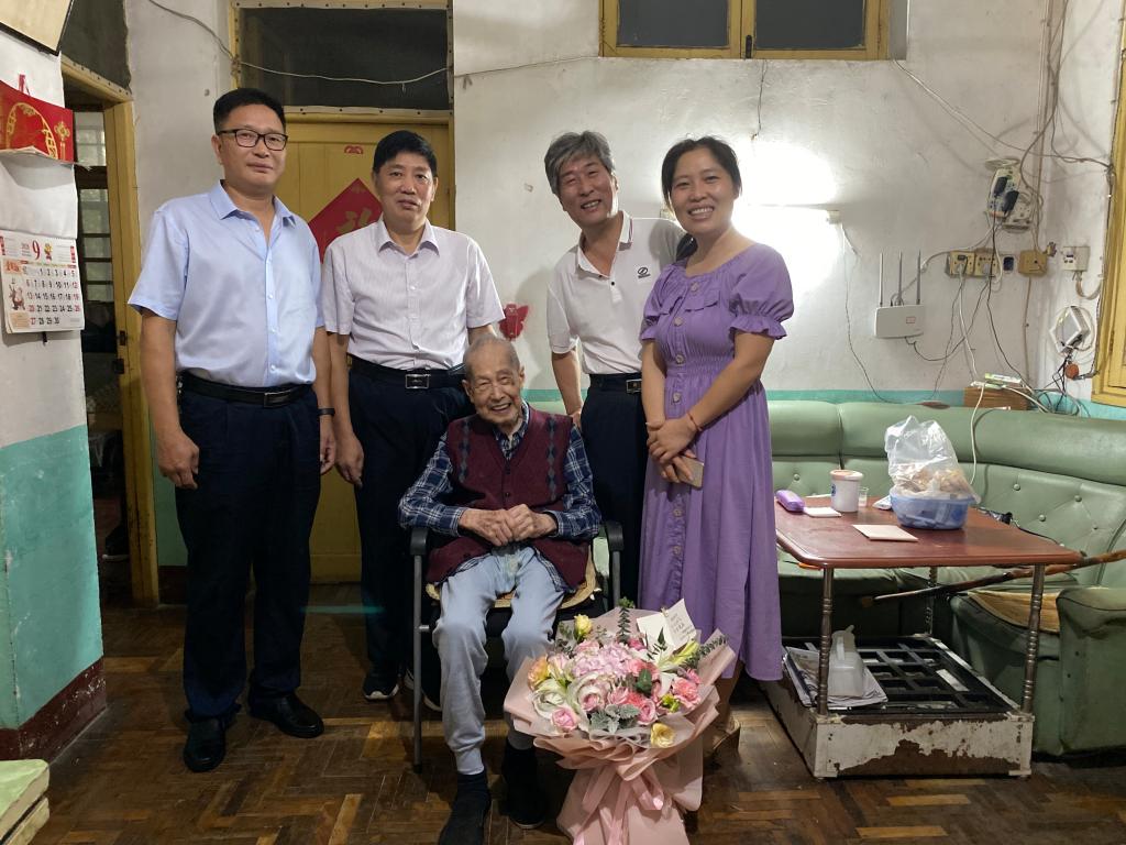 上午,学院院长杨荣华、党委书记于风江、副院长谭东波、副书记罗艳带队看望慰问了百岁老教师林立炟,于风江和杨荣华关切询问了林立炟的生活近况,并代表全院师生向林立炟送上鲜花和节日的祝福。
