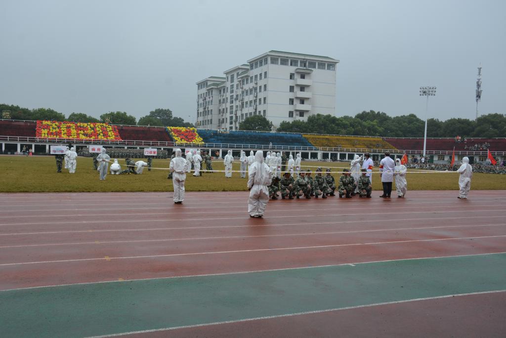 升国旗奏唱国歌,化工院2020级292名新生昂首挺胸,敬礼致意,他们精神抖擞,已经为队列检阅做好了十足的准备。队列汇演过程中,标兵动作英姿飒爽,方阵斗志昂扬,整齐地喊出口号:化学化工,谁与争锋,王者雄风,唯我化工。整个过程干净利落,气宇轩昂,获得领导一致好评。在特色方阵方面,与生命科学学院合作的防疫演练更是尽展特色。最终化工院取得了军训内务先进单位、汇演队列先进单位、特色方阵先进单位的好成绩。