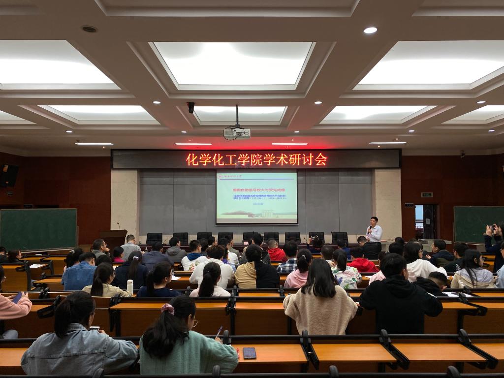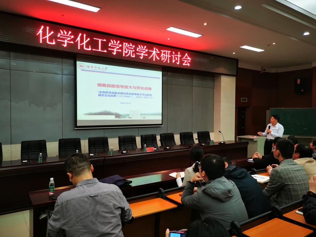 杨荣华教授以“细胞自助信号放大与荧光成像”为题目为学院青年教师带来了精彩的报告,他从课题的研究背景、关键的科学问题和如何采取有效的策略解决问题等几个环节展开讲解,内容精彩而丰富,报告结束后部分老师就感兴趣的问题进行了热烈的讨论,杨荣华教授一一做了解答,同时他就如何开展高质量的科学研究对与会老师提出了一系列建设性的意见。