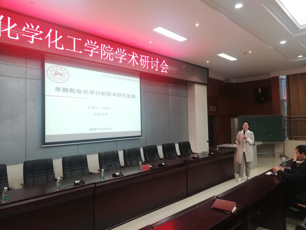 随后,彭岳一博士以“单颗粒电化学分析技术研究进展”为题目展开交流,她简要介绍了单颗粒电分析化学技术的发展历史,重点讲解了该技术发展过程中的标志性成果,展望了该领域的发展方向,并提出了未来要开展的研究方向。部分老师就感兴趣的问题与彭老师进行了交流与讨论。
