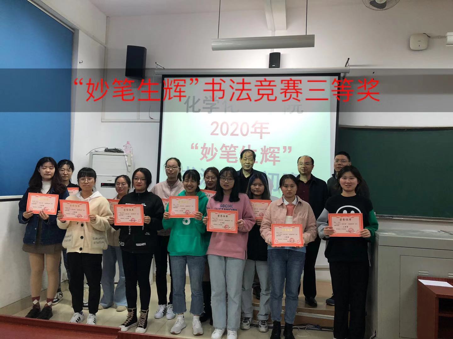为规范学生的书写行为,稳固粉笔字、钢笔字等教学基本功,提高学生的书写水平,增强学生对中国汉字文化的了解,2020年11月20日晚,yl6809永利官网在化学楼217教室成功举办了“妙笔生辉”书法竞赛,由化工学院“三字一话”主讲教师肖小明教授、陈应庄副教授和曾佑林教授三位老师担任评委,共有30名学生参赛。