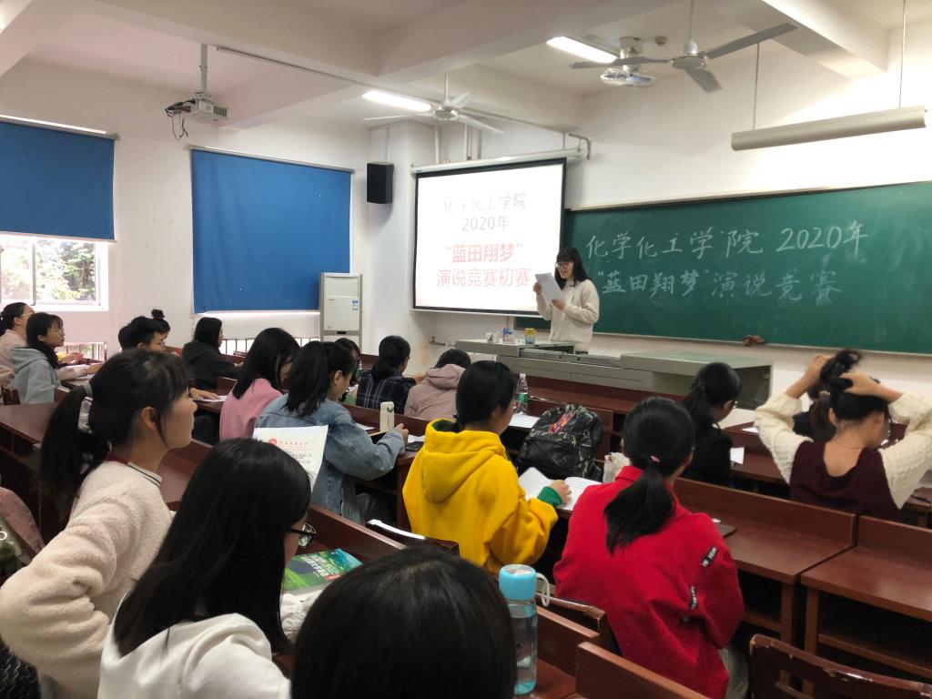 为进一步提高广大师范生的语言表达能力和综合素质,强化师范生教师职业技能,营造良好的教师教育氛围,2020年11月20日中午,化工学院在化学楼217教室成功举办了“蓝田翔梦”演说竞赛,由余丽萍教授,耿淑玲副教授和学院“三字一话”课程主讲教师阳斌三位老师担任此次比赛的评委。