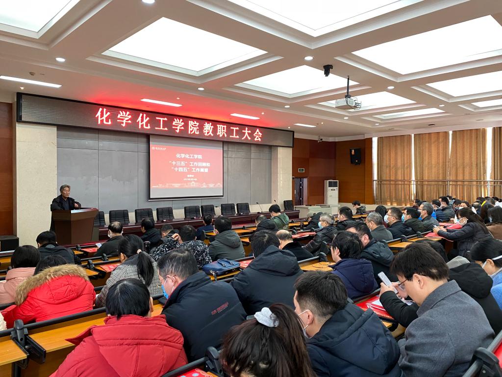 杨荣华从学科建设、人才培养、师资力量、党团建设、管理服务等方面对“十三五”期间全院的工作成果作了回顾。他指出,过去的五年,学院全体师生紧紧围绕学校“双一流”建设发展目标,团结奋斗、开拓创新,学院学科建设水平持续提升,人才培养质量逐步提高,师资力量不断加强,党团建设特色突出,文化建设不断丰富,管理服务规范有序,安全环保稳步推进,学院发展整体一片向好,圆满完成了“十三五”规划确定的各项目标。同时,他从多个角度总结了现阶段学院所面临的问题与挑战。他指出,在接下来的“十四五”中,学院将整合资源,大力推动专业建设、教学改革和师资队伍建设,抓好课程思政和人才培养;强化政策导向,激励教职工在科学研究、社会服务和教学工作等领域不断深耕;持续推进国内外学术交流与合作,扩大学院整体影响力。